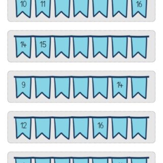 Bei diesen vier Seiten mit Wimpeln im Zahlenraum bis 20 sollen fehlende Zahlen sollen ergänzt werden.