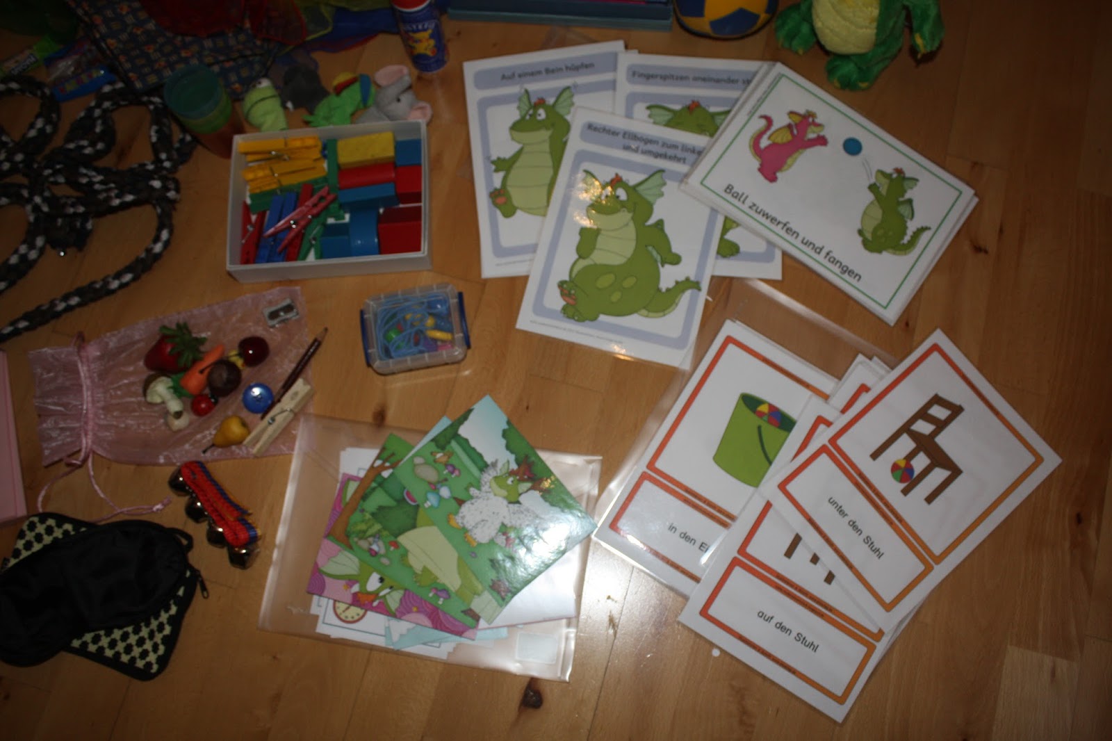 Außerdem habe ich mir eine Kartei angelegt, die geordnet nach einzelnen Entwicklungsbereiche mögliche Aufgaben enthält.