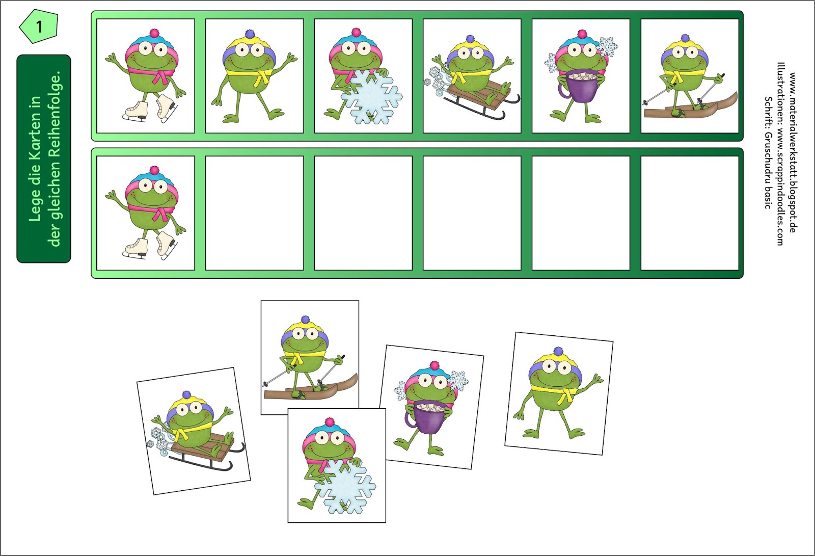 Diese Kartei besteht aus 20 Karten. Auf jeder Karteikarte sollen 6 Bilder in der gleichen Reihenfolge darunter gelegt werden.